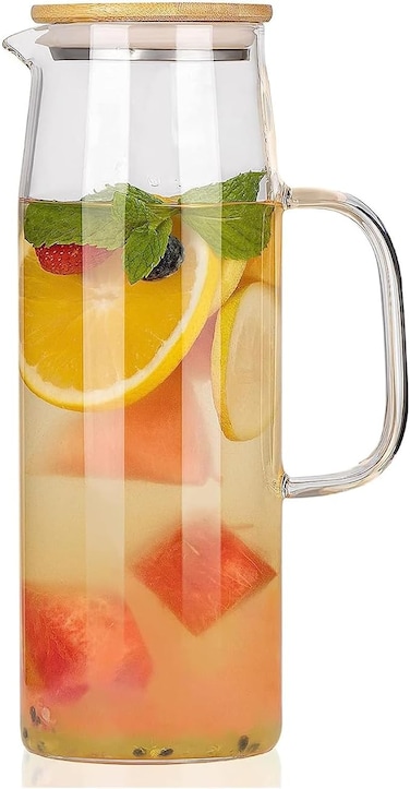 • Borosilicate Water Jug With Handle and Bamboo Lid 1200 ML, Heat Resistant Water Jug for Juice,Iced Tea Beverage etc (1200 ML)