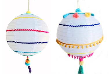 • Add a fun touch to your home or party décor with these hanging round paper lanterns. • In this pack you’ll receive 2 pieces (different designs). • Made with round metal frame wrapped in high-quality paper and adorned with zigzag lace trimming and pompoms. • Embellishments include cotton pompom balls, fabric tassels and wooden beads. • Very easy to assemble. • Ideal for hanging as wedding decorations, birthday party decor and more. • Can also be used as a lamp shade as it softens the lighting to a soothing glow. • Ball Diameter: 30cm (each).