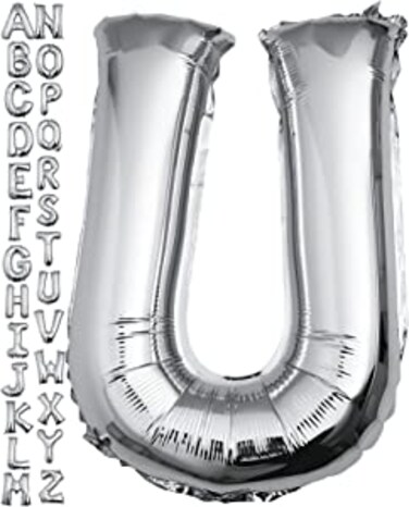 40 Inch Silver Letter A Balloon, Big Size Alphabet Foil Mylar Helium Balloons for Birthday Party Celebration Wedding Anniversary Baby Shower Decorations Supplies Alphabet U