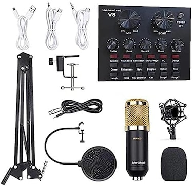 ALDD Live Sound Card and BM800 Suspension Microphone Kit Broadcasting Recording Condenser Microphone Set Audio Mixer Sound Card