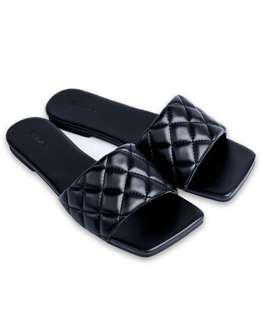 AMICA Allegra Classic Square Open Tope Quilted Single Band Slide in Comfortable Sandal