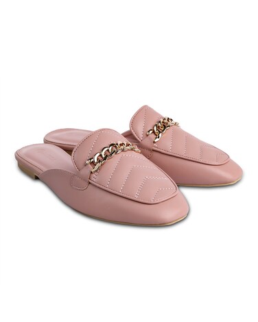 AMICA Bella Flat Mules for Women Flats Chevron Quilted Slip-on Loafers Casual Shoes