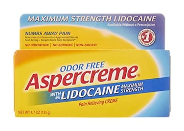 - Aspercreme With Lidocaine Maximum Strength Pain Relief Cream Targets More Pain Receptors Than Any Other Over-The-Counter Topical Analgesic To Relieve Pain At The Source, So You Can Forget Your Pain And Embrace The Day. The Active Ingredient In This Non-Greasy, Odor-Free Topical Pain Cream Numbs Away Pain With No Irritation And No Burning For Discreet And Comfortable Relief. With Its Powerful, Fast-Acting Formula, Aspercreme Numbing Cream Works In Minutes And Provides Relief For Hours. Use Aspercreme As A Foot Pain Cream, Back Pain Cream, Muscle Pain Cream, Joint Pain Cream Or Arthritis Pain Relief Cream. Aspercreme Comes In Odor-Free Creams, Lotions, Roll-Ons, Gels And Patches With Or Without Lidocaine, So You Can Get Real Time Pain Relief Without A Prescription. Among Counter-Irritant Topical Pain Relievers
