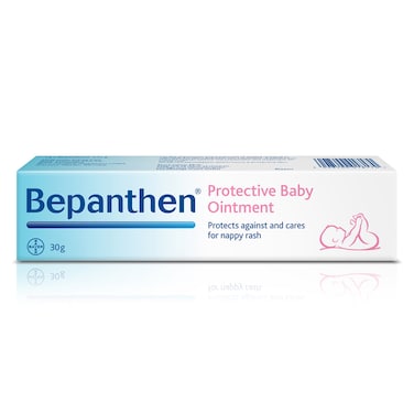 - Bepanthen Protective and treatment Baby Ointment helps protect the vulnerable skin of young babies from irritation and other causes of nappy rash and regenerate the skin. Bepanthen Protective baby ointment contains Pro Vitamin B5 which regenerates skin and helps to keep it moisturized. The Bepanthen water-in-oil formulation keeps skin healthy and hydrated.