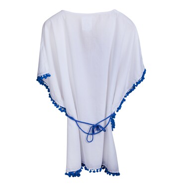 Biggdesign Pompom Beach Dress S-M, 100% Cotton Fabric, Beach Elegance, Small/Medium