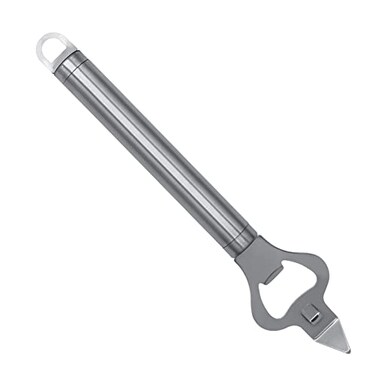 BACKSTONE Bottle opener with piercing tip Made Of stainless steel durable and sturdy. Classic Beautiful design, Easy to hold and easy to use, easy to store with hook. Comfortable to hold and non-slip grip. Dishwasher safe.