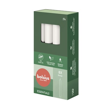 Bolsius Essentials Box of 8 Dinner Candles 170/20mm - Cloudy White