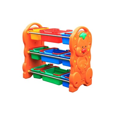 This space-saving Kids Toy Storage Organizer with Plastic Bins stores lots of children's toys in easy-to-see, easy-to-access plastic bins.
