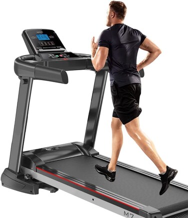 7 layers of diamond grain shock absorption running belt :560mm running belt enjoy free running, non-slip, wear resistant, comfortable and durable, dynamic foot protection, quiet low noise, high stability, high resilience, wear resistant surface layer, PEP sound insulation layer, shock absorptive cushion, EVA sound insulation layer, slow shock strengthening layer, compression layer, bearing layer.LED screen: Classic LED panel, easy to control. There is a key area, magnetic attachment safety lock, key area on both sides of the multi-functional storage tank.2.5HP silent energy-saving motor: high precision machining movement, powerful, but more quiet. Stable running speed, energy saving, low power consumption, sound less than 60DB.M7 multilayer running plate dispersion shock absorption: M7 uses multilayer rebound running belt, absorbing and resolving the effect of multiple shock absorption system, interlocking, avoid brutal rebound.300 kg load bearing test: this is a solid treadmill, built in accordance with safety standards of a treadmill, beautiful appearance, internal solid, fully ensure the user experience.