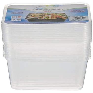 Cosmoplast 1000 ml Pack of 10 Clear Microwave Containers with Clear Lids, IFCMMWCLT100S01TP