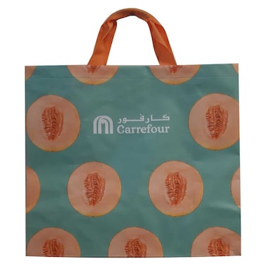 The Carrefour Sweet Melon Printed Shopping Bag is a big, green and orange bag that is perfect for carrying your groceries or shopping items.
