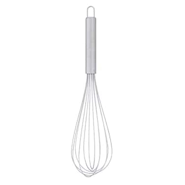 - • STAINLESS STEEL - Made of high quality stainless steel, the durable wire whisk provides long-lasting strength and reliable performance. • ERGONOMIC HANDLE - Contoured for comfort, the ergonomic stainless-steel handle allows for a secure grip and ultimate control. • VERSATILE CONVENIENCE - The 12-inch wire whisk comes in handy for a variety of tasks, including beating eggs, blending sauces, mixing batter, making whipped cream, and more. • SOLVE THE PROBLEM OF WRIST FATIGUE - The size of this balloon whisk can meet your daily cooking mixing needs, and are also suitable for bowls of any size. The multi-line metal whisk easily and quickly achieves the perfect exquisite and sticky mixing effect without using a spoon stir for a long time. • WHISK WITH HOOK - Hanging upside down after use prevents water from entering the handle and keeps the kitchen organized. • Lightweight; Premium quality • High quality stainless steel • Size: 30x7x1.9cm • Gross weight: 77G