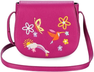 Celebrate the magical Madrigal family from Disney's Encanto with this vibrant crossbody bag featuring embroidered birds, butterflies and flowers on the back and front flap. The adjustable strap allows you wear this fully lined at the perfect height.