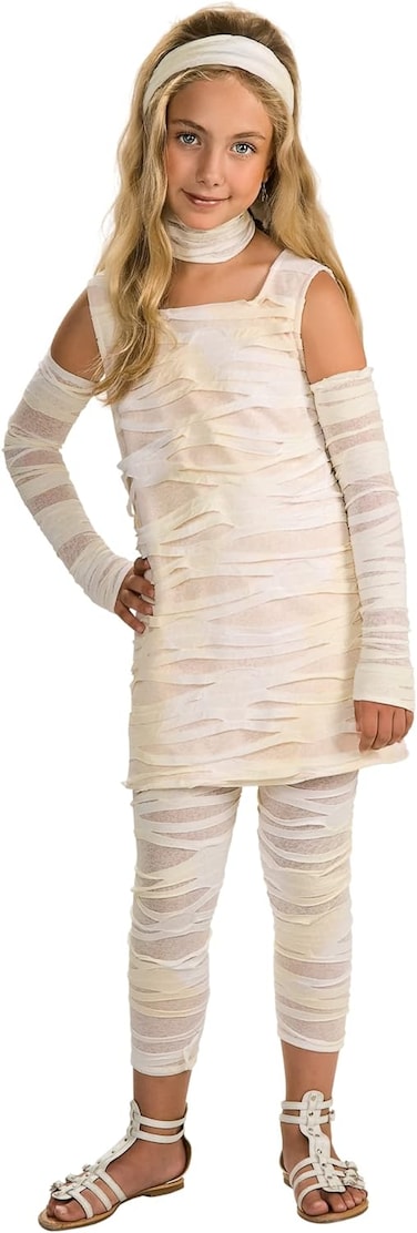 Girls Costumes - This Girls Mummy-ista Costume includes the Egyptian mummy costume dress, matching glovelets, matching leggings, choker and the headband.