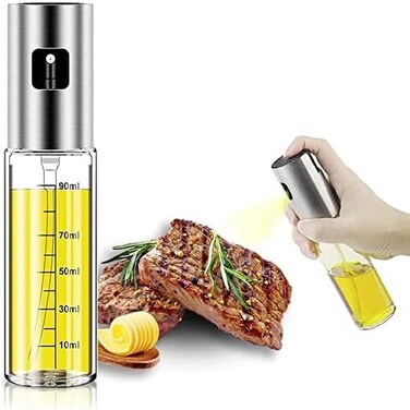 - • 【Premium Material】 -The oil sprayer dispenser was made of 304 stainless steel and food-grade glass, free of BPA and harmless. 100% food safe, This is the most economic and ecological way to add seasonings and oils to food. • 【Multiple Uses】 -The sprayer bottle can contain any liquid, such as olive oil, canola oil, balsamic vinegar, soy sauce, wine, lemon and lime juice, salad dressing, water and other liquids can be used,The attached small funnel allows you to fill up with oil more easily, and the unobstructed hose will not cause oil clogging. • 【Reusable and Visible】 -The oil jet was perfect and easy to fill. This olive oil sprayer is made of stainless steel and food grade glass, transparent glass oil can easily see the capacity and dosage. can recognize the seasoning (oil / vinegar / sauce) quickly. • 【Unique Design】 - The design of the threaded bottleneck of the oil sprayer provides better sealing, the built-in nozzle avoids dust contamination. Bottle marked with a scale, helps you control the amount of oil used during cooking, reduces fat intake. • 【Easy to Use】 - Put your favorite oil or vinegar in the sprayer and press lightly down on the pump for a uniform spray. The simple pumping action produces a fine and uniform sprayer that allows you to better control the amount used and the number of calories, which is healthier for you and your family. Much better and more convenient than using a brush.