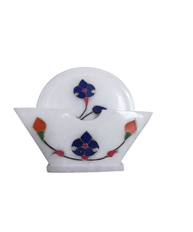 - • Artistic Masterpiece: The coaster set showcases the beauty and intricacy of handmade marble inlay floral mosaic art. Each coaster is a miniature work of art, allowing you to bring the elegance and craftsmanship of this traditional art form into your home. • Conversation Starter: The unique design and exquisite detailing of the coaster set are sure to spark conversations among your guests. It serves as a captivating centerpiece on any coffee table or dining surface, inviting admiration and inquiries about its origin and craftsmanship. • Luxurious Gift Option: Whether it's a housewarming party, a wedding, or a special occasion, the coaster set makes a luxurious and thoughtful gift choice. Its high-quality materials, stunning design, and cultural significance make it a memorable and cherished present for loved ones or colleagues. • Versatile Decorative Piece: Beyond its practical use as coasters, this set can also be displayed as a decorative ensemble. The vibrant floral patterns and elegant marble make it a versatile decor element that can be showcased on shelves, side tables, or even mounted on a wall for a visually striking statement. • Durable and Long-Lasting: Made from premium marble, the coaster set is highly durable and built to withstand everyday use. The natural properties of marble, including its resistance to heat and moisture, ensure that these coasters will continue to enhance your table settings for years to come.