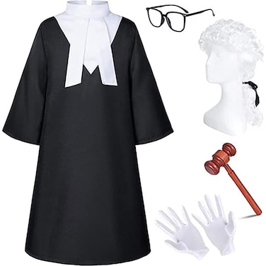 FITTO Lawyer Costume for Kids with Gavel, Wig and Glove, Perfect for Dress up Play and Halloween