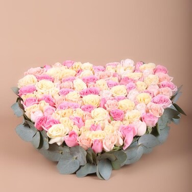Pastel Roses in a heart shape tray