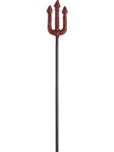 Add a little sparkle to any devil costume with this red Glitter Trident. This 23″ plastic trident with black handle is a great accessory for many costumes. 1 trident per package