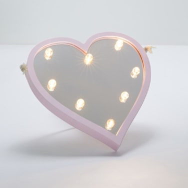 • Add a bright appeal to your room with this LED-lighted heart-shaped mirror. • Wooden pink frame. • Features 8 LED lights. • Comes with a trendy rope dangler to hang it conveniently on any wall. • Size: 32x30cm.