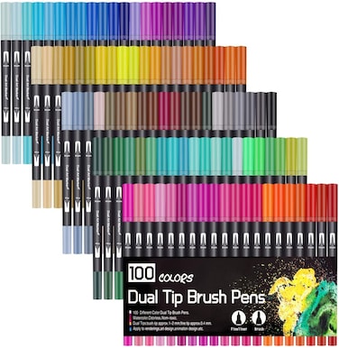 - 1) 100 Vibrant Rich Colours: Multi-color and dual tipped option for precise highlighting and underlining, for drawing with both thin and thick lines. 2) Dual Tips: 0.4mm Fine Tip for detailed outlining and fine lines, 1-2 mm nylon fiber brush tip for shading and colouring. 3) Premium Quality Ink: The ink is ACID-FREE & NON-TOXIC, Non-toxic, unscented, and Conforms to ASTM D-4236, and fast dying. 4) Colour-code Caps: The Colour-coded caps allow for ease in organization and use in identifying colours. Multi-Purpose: Perfect for drawing lines & details, painting, sketching, highlighting, journaling, signing, illustration, doodling, hand lettering, shading, rendering, manga and more. Ideal for professional fine art, adult colouring book and crafts.
