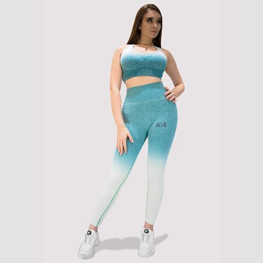 Kidwala 2 Pieces Armour Set - High Waisted Seamless Leggings with Sports half Sleeves Top Workout Gym Yoga Ombre color Outfit for Women (Small, white & Teal)