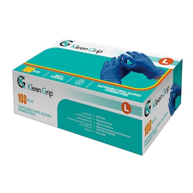 Kleen Grip 100 Blue Disposable Vinyl Gloves Powder Free Large