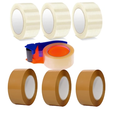 SPECIFICATIONS-This pack includes three Brown and Cliear tapes, each measuring 2 inches in width and 50 yards in length, ideal for packaging needs. The tape dispenser ensures convenient application, making it efficient for sealing boxes and securing packages. The durable design and ample tape length make it a reliable choice for various packaging tasks.