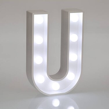 LED Marquee Letter Light Sign Wooden White (U) 25cm