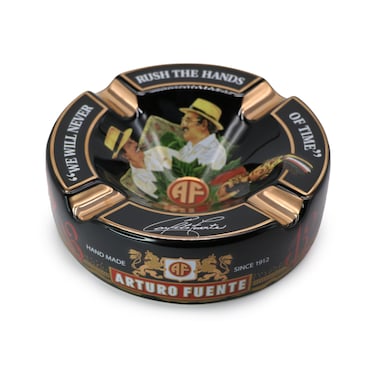 The Arturo Fuente family has been making high quality cigars for four generations and they have released a ceramic ashtray to symbolize their devotion to quality and consistency over the years. Reading We will never rush the hands of time this beautifully crafted ashtray measures 8 in diameter and has a 2 high dish. Able to hold four cigars, this ashtray is painted in great detail. Your ashes will be proud to be laid to rest in this fine work of art.