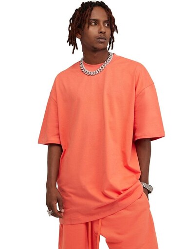 Mei Stylish Men's Casual Breathable Loose Shoulder Oversize Crew Neck T-shirt, L Size, Orange