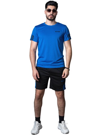 Mei Stylish Men T-Shirt And Shorts Set Suitable For Indoor And Outdoor, XL Size, Black & Blue
