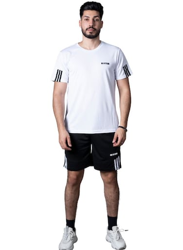 Mei Stylish Men T-Shirt And Shorts Set Suitable For Indoor And Outdoor, XXL Size, White & Black