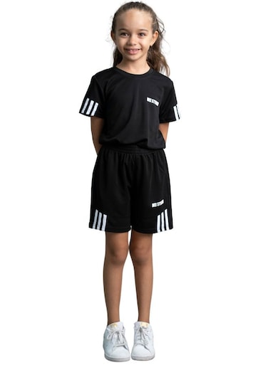 Mei Stylish Unisex Kids Sustainable Active wear T-Shirt And Short set, 7-8 Years Black