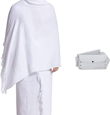 Men's Ihram clothing set for Hajj and Umrah, cotton clothes and one belt, weight 1000 grams.