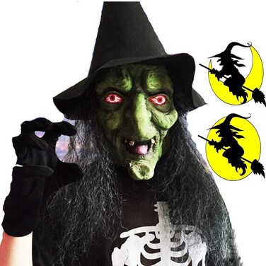 Mltao Old Witch Mask With Hair And Hat Latex Halloween Dress Up