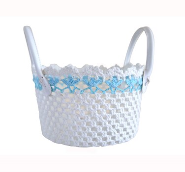 • Our gorgeous crochet basket made even more beautiful with little blue flowers in a row. It’s so versatile you can use it as a swanky organizer to keep everything within reach, place it on a shelf as a chic display or make gifting extra special by filling them in with precious gifts and sweet delights – the possibilities are truly endless!