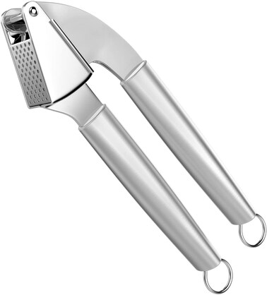Nuovoware Garlic Press, Premium Stainless Steel Garlic Mincer and Squeezer, Ergonomic Design, Crush Garlic Cloves & Ginger with Ease, Silver