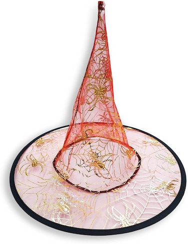 Party Time 1-Piece Red & Gold Spider Web Design Witch Hat, Halloween Hat For Halloween Costume Accessories - Halloween Party Supplies