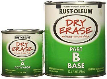 Rust-Oleum Specialty Dry Erase Paint creates a unique writeable-erasable surface for walls, doors, cabinet doors, message centers, menu boards, toy chests, easels, and craft projects. Create customize dry erase surfaces in any unique shape or on place in your office or home. Its the only paint of its kind that creates a true writable-erasable finish. Model Number: 241140
