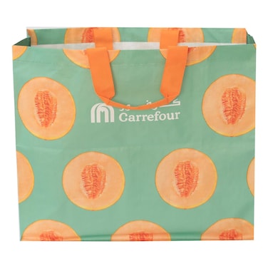 The Carrefour Sweet Melon Printed Shopping Bag is a stylish and eco-friendly option for carrying your groceries or other items.