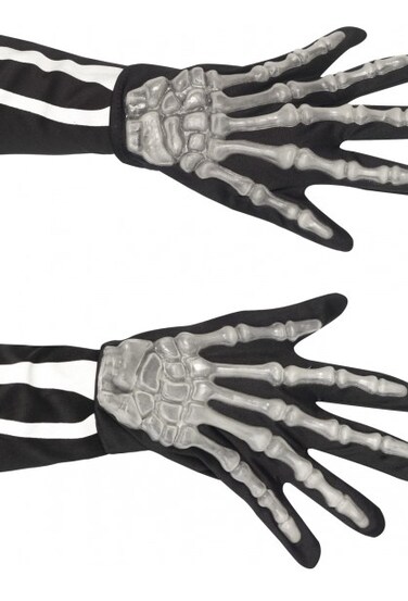 Dressing as a skeleton this Halloween? Complete your look with these Skeleton Gloves, adult size. For the complete look don't forget to purchase the Skull Overhead Mask.