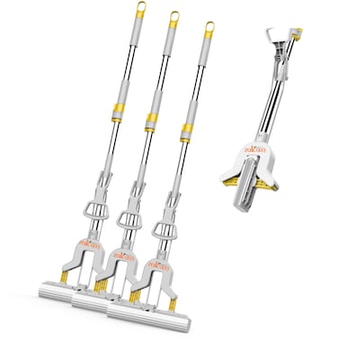 ZALCOON PVA Folding Sponge Mop, Self Squeeze Super Absorbent PVA Sponge Heads Telescopic Metal Handel Household Cleaning Tool for Kitchen, Tiles, Multi-Surface Hard Floors (Pack of 3)