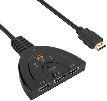 - <p>This multi-port switch routes 3 HDMI inputs to 1 Output (in multiple resolutions up to 4k) and digital audio from three sources to a display unit.</p><p>No Extra power adapter required, Plug and Play, What a convenient and cost-effective solution.</p><p>Colour: Black</p><p>Material: Plastic Construction</p><p>HDMI Switch, 3 Port 4K HDMI Switch 3 in 1 Out with High Speed Switch Splitter Pigtail Cable Supports Full HD 4K 1080P 3D Player HD Audio for HDTV, Projector, Computer,Monitors</p>