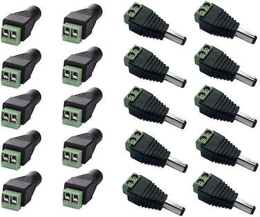 Tomvision - 10 x Male + 10 x Female 2.1x5.5mm DC Power Cable Jack Adapter Connector Plug Led Strip CCTV Camera Use 12V