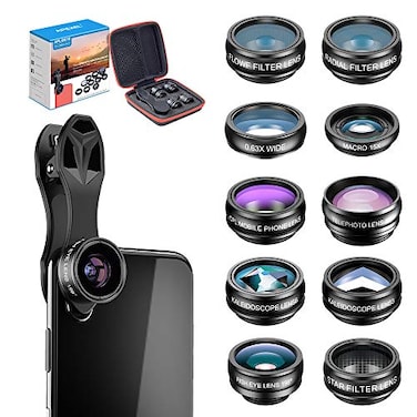 - Apexel 10 In 1 Phone Camera Lens Kit Wide Angle/Macro/Fisheye/Telephoto/Cpl/Flow/Radial/Star Filter/Kaleidoscope Lens For iPhone And Most Phone