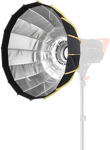 The silver particle inner baffle with 2 layers white and 1 layer grid, creating soft and even light, which helps your photography more perfect.