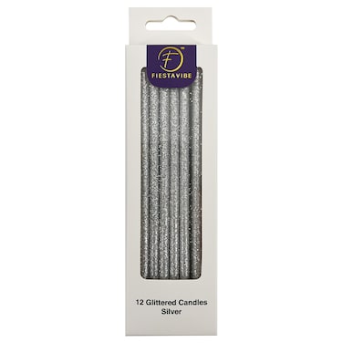 12 Glittered Candles Silver