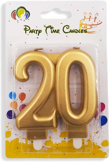 Party Time Gold Number 20 Birthday Candle Kids Adult Birthday Cake Decoration - Number Candle For Anniversary, Valentines Birthday Candle Cake Topper