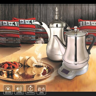 - The Crownline DUO-252 Teapot Karak Tea and Arabic Coffee Maker, Stainless Steel with Infusers for Loose Tea and Coffee, 220–240 V, 50–60 Hz , 850–1000 W